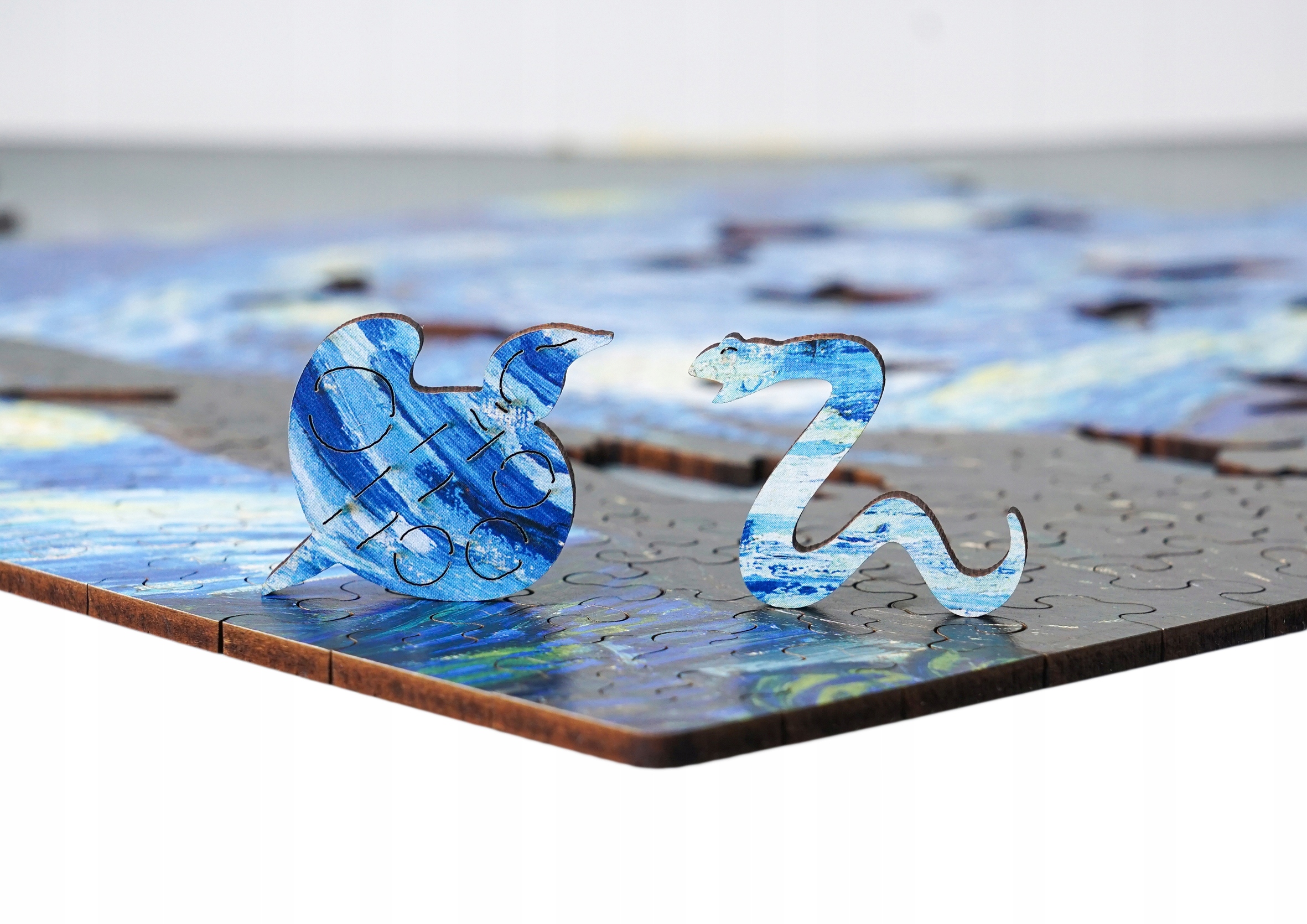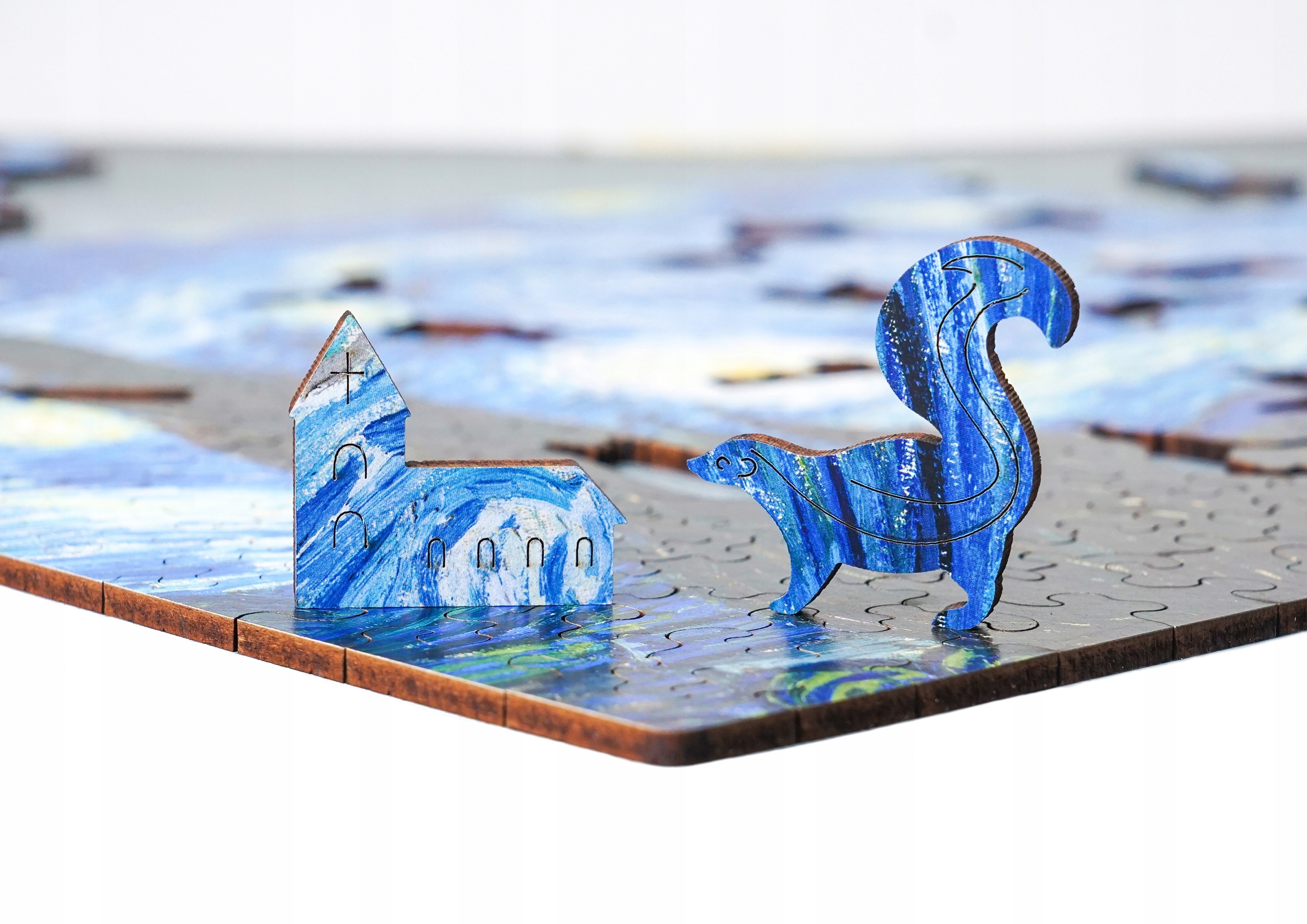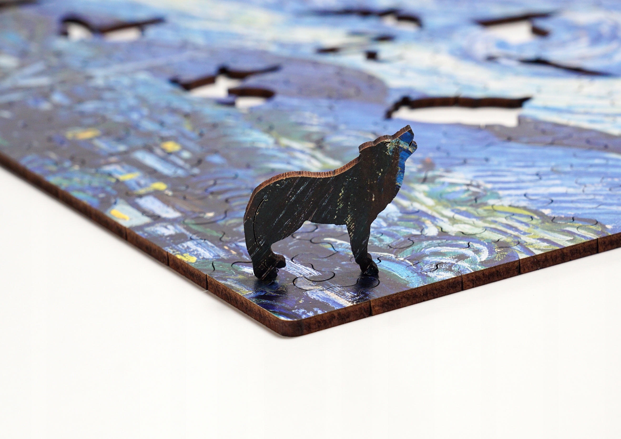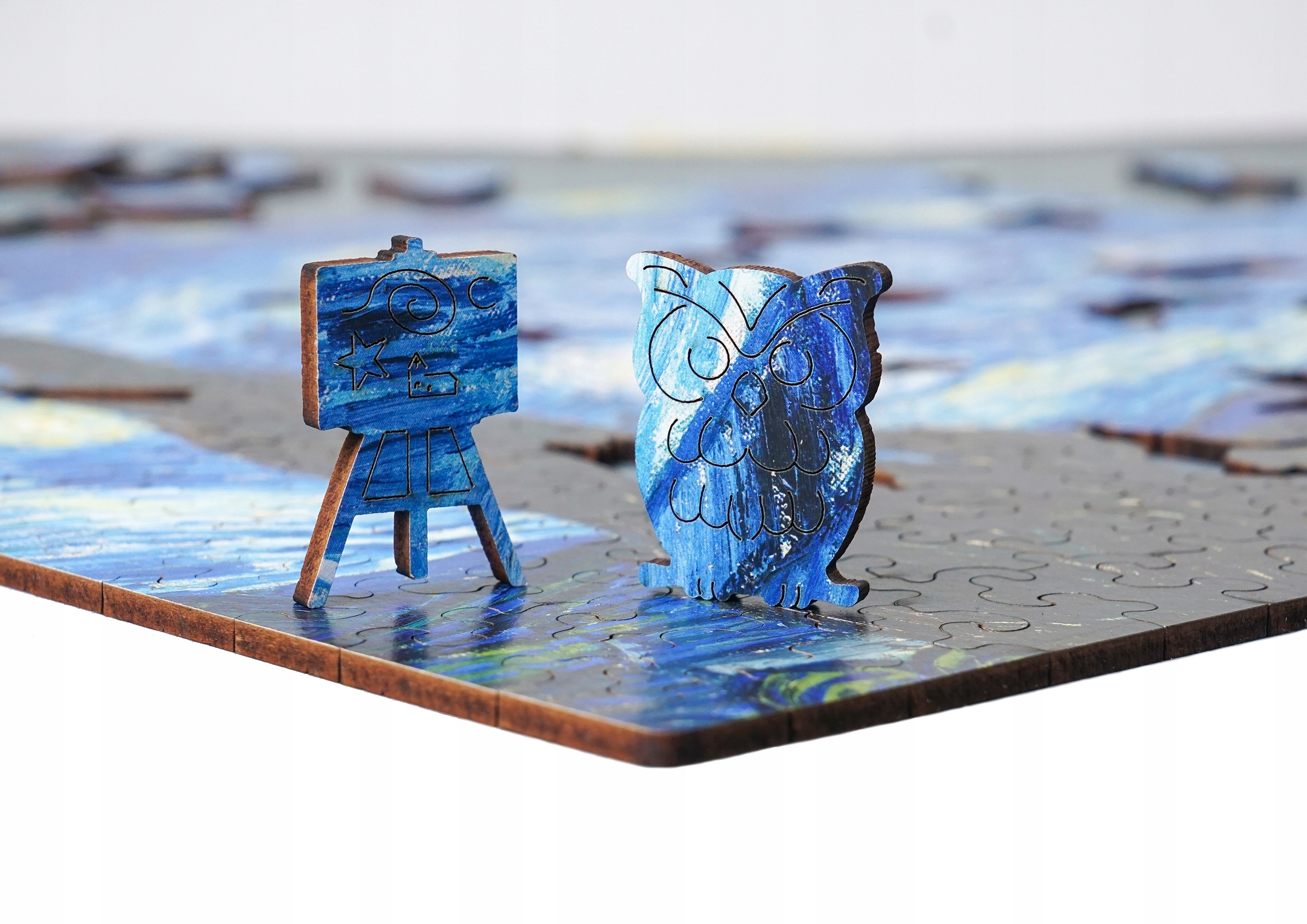 Przepiękne drewniane puzzle przedstawiające obraz Vincenta van Gogha "Gwiaździsta noc"".