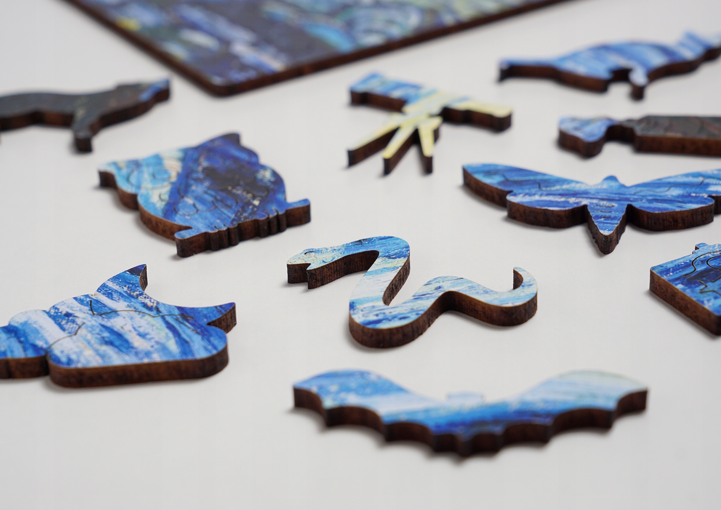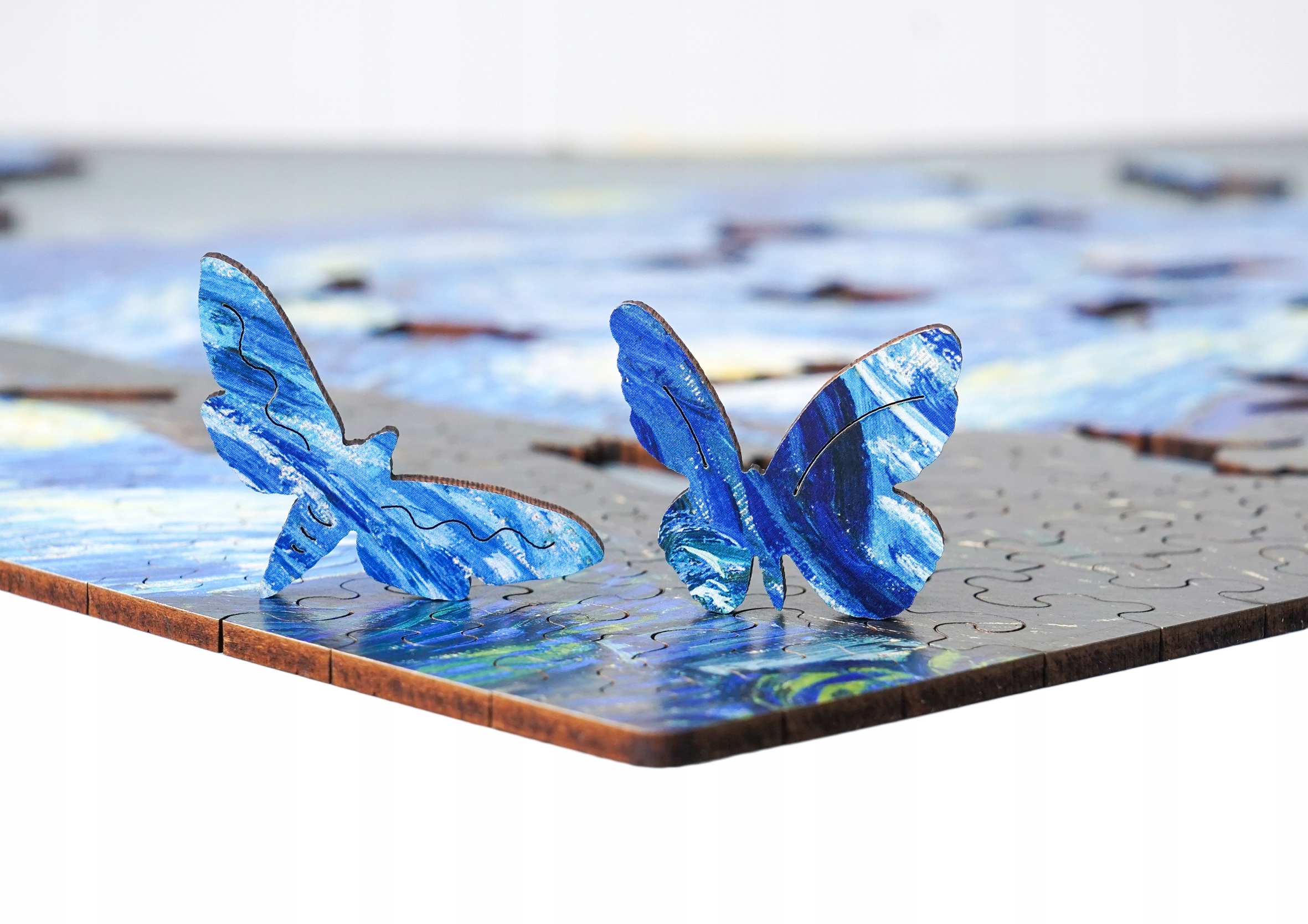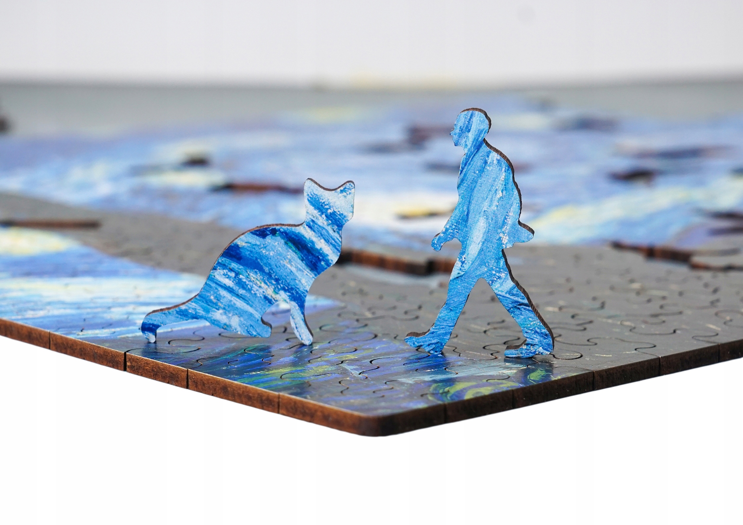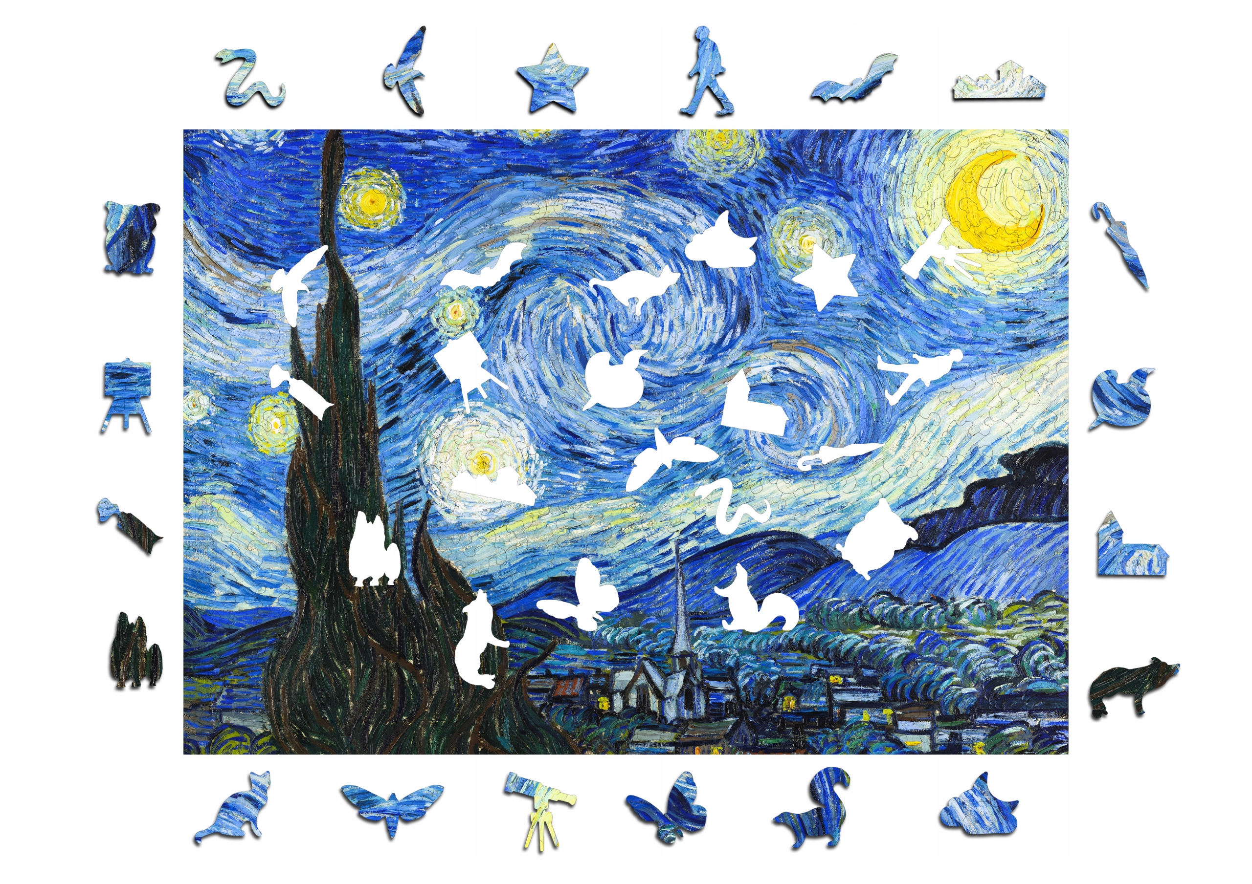Przepiękne drewniane puzzle przedstawiające obraz Vincenta van Gogha "Gwiaździsta noc"".